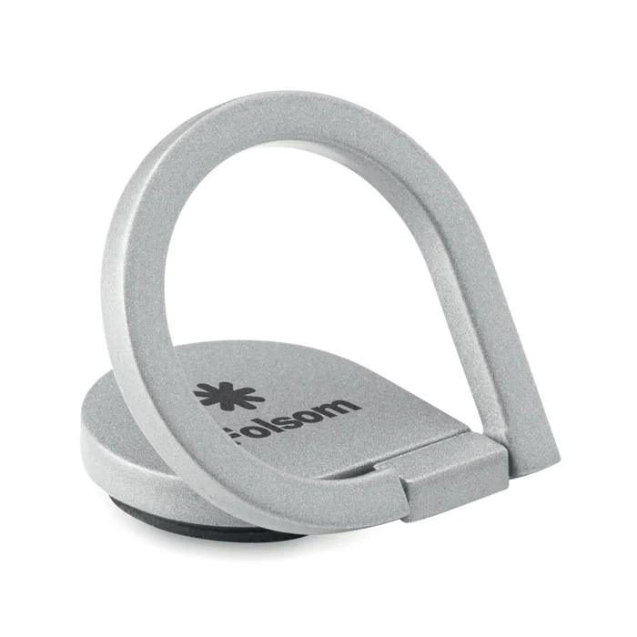 Phone holder with ring in matt zinc alloy. 3M sticker on back.